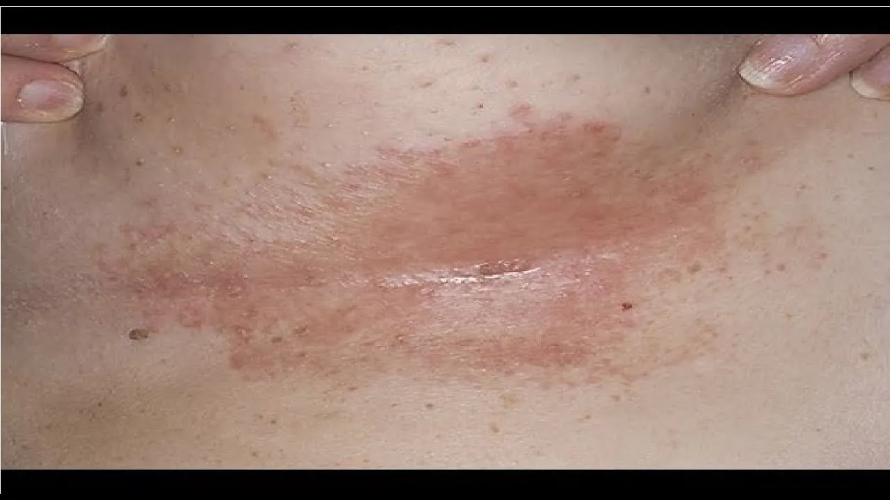 The cause of that symptom is a fungus called candida and its species. This fungus can cause vaginal yeast and oral thrush infections and diaper rash as well. Candida yeasts always cause infection at the places, which humid and warm environment, such as inframammary folds of large breasts.